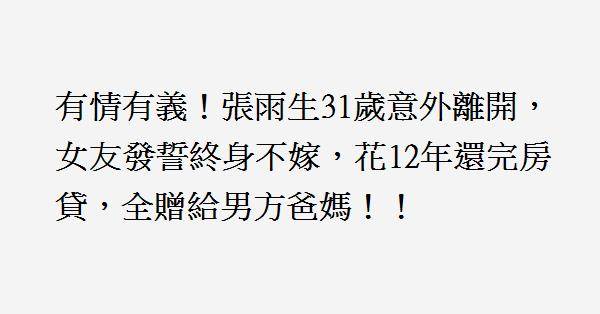 張雨生出交通事故後,女友黃惠玲從幕後走到幕前。記者採訪黃慧玲,問她以後有什麼新的打算。黃惠玲只輕輕地說了一句:我終身不嫁。在他們剛剛開始戀愛的時候,張雨生和黃惠玲一起貸款買了一套別墅,剛拿到鑰匙沒有多長時間,張雨生就去世了。